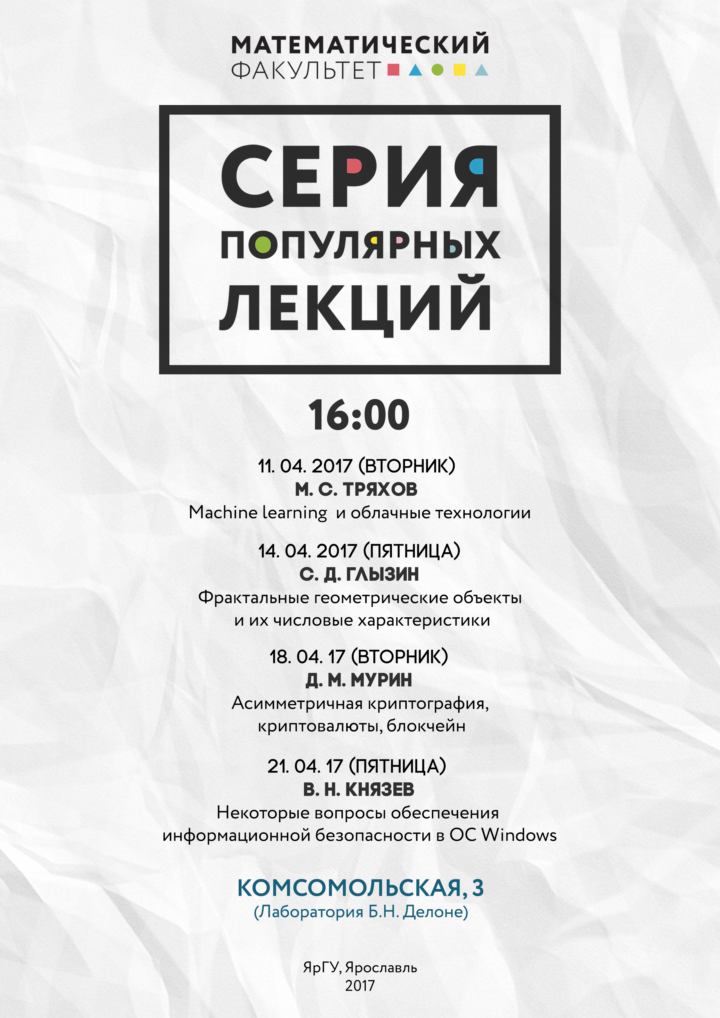 Математический факультет ЯрГУ им. П.Г. Демилова проводит серию научно-популярных лекции для школьников