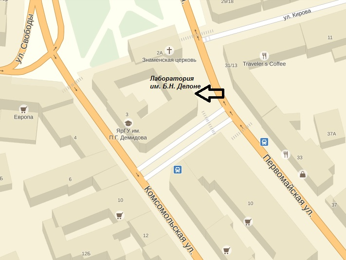 Место: помещение Международной научно-исследовательской лаборатории «Дискретная и вычислительная геометрия» имени Б. Н. Делоне, которая расположенна по адресу ул. Комсомольская, д. 3 (конференц-зал).